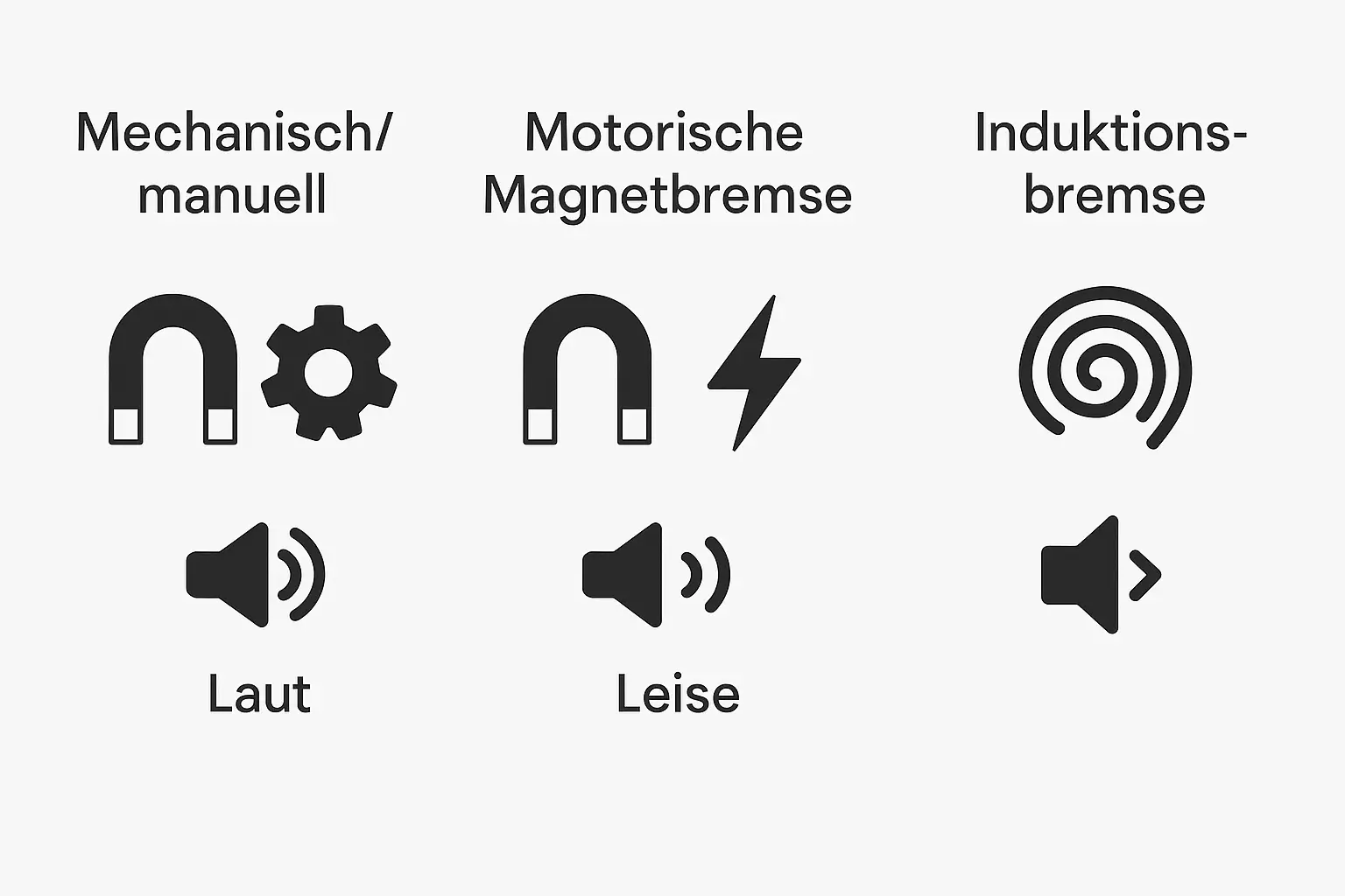 Das Bremssystem erzeugt den Trainingswiderstand. Es bestimmt nicht nur, wie fein Sie die Belastung steuern können, sondern auch die Lautstärke und den Wartungsaufwand des Geräts. Hier gibt es drei grundlegende Technologien.