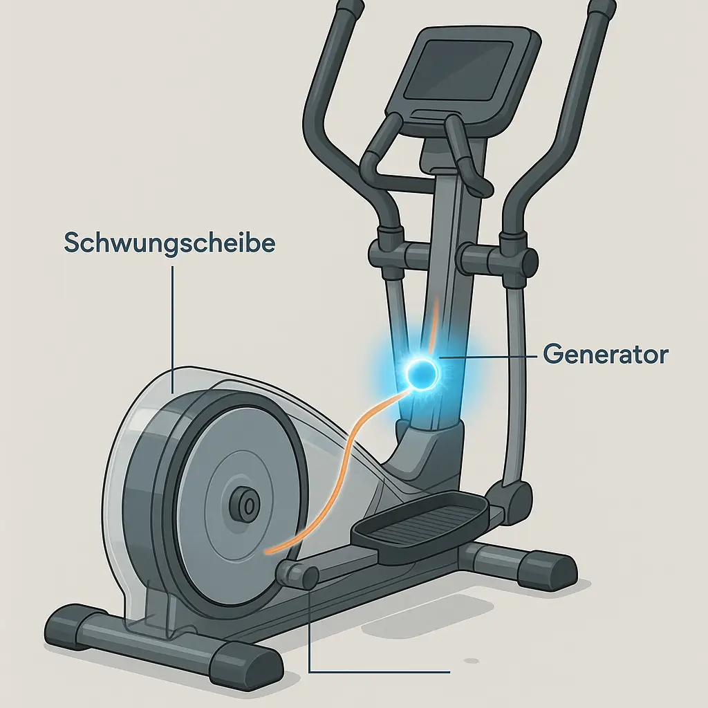 Ein Crosstrainer ohne Stromanschluss funktioniert über ein sogenanntes Generatorbremssystem. Dabei erzeugt der Nutzer beim Training selbst die Energie, die zum Betrieb des Displays, der Steuerungseinheit und ggf. weiterer Elektronik notwendig ist. Im Inneren befindet sich ein kleiner Generator, der über die Bewegung der Schwungscheibe angetrieben wird. Je nach Modell reicht die erzeugte Leistung aus, um alle Basisfunktionen abzudecken – ganz ohne Steckdose oder Batteriewechsel.