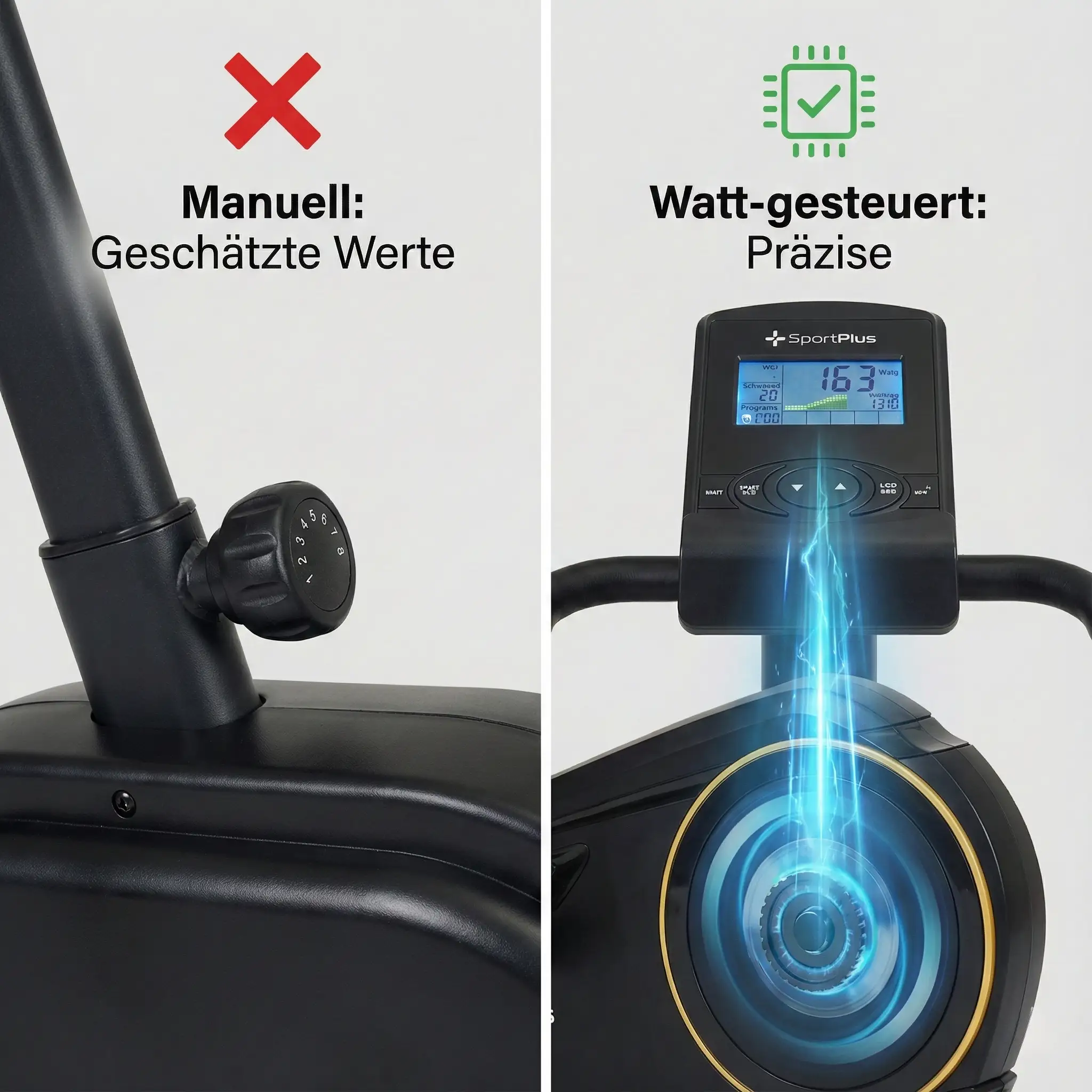 Umgangssprachlich nennen wir alles „Heimtrainer“. Technisch gesehen ist ein Ergometer aber ein Gerät, das die Leistung präzise in Watt anzeigt und regelt. Für Kniepatienten ist das wichtig, um Überlastungen zu vermeiden. Du kannst dir vom Arzt eine Vorgabe geben lassen (z.B. „Nicht mehr als 50 Watt“) und das Gerät hält diesen Wert exakt ein.