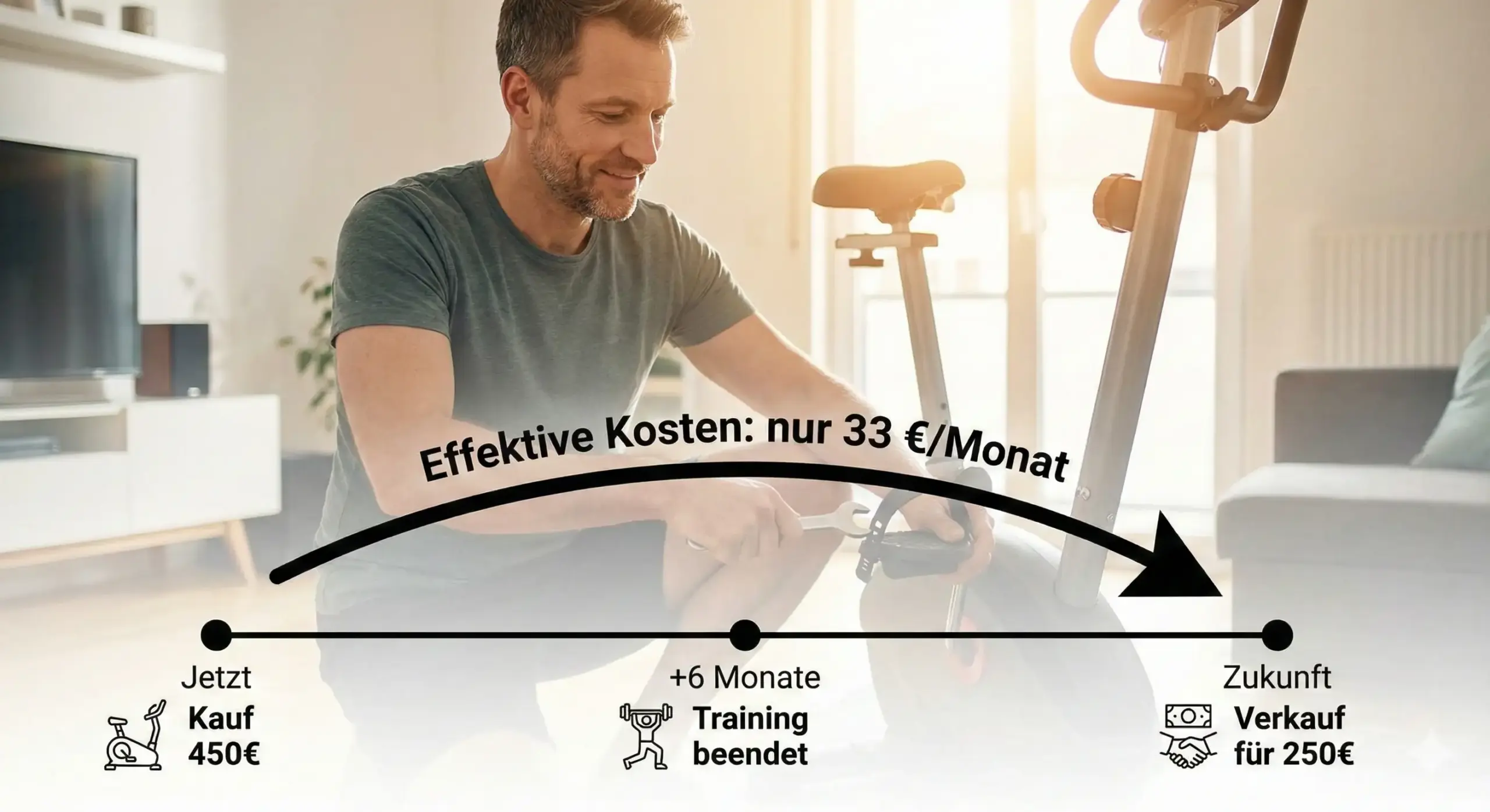 Selbst wenn du das Gerät am Ende verschenken würdest, wärst du kaum teurer dran als bei der Miete. Aber du hast die Freiheit, es jederzeit zu behalten, falls du doch Gefallen am Sport findest.