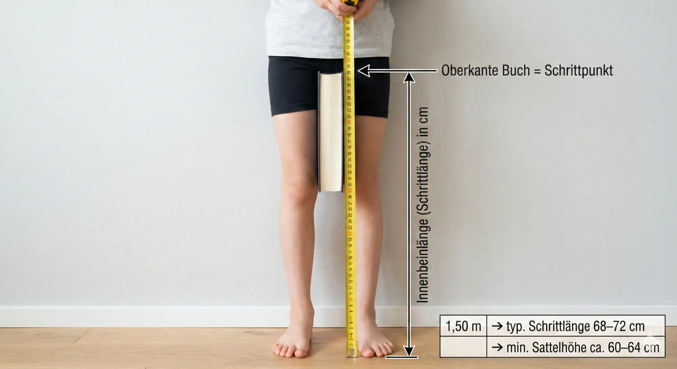 - Miss den Abstand von der Oberkante des Buches bis zum Boden. Das ist deine Schrittlänge (Innenbeinlänge).