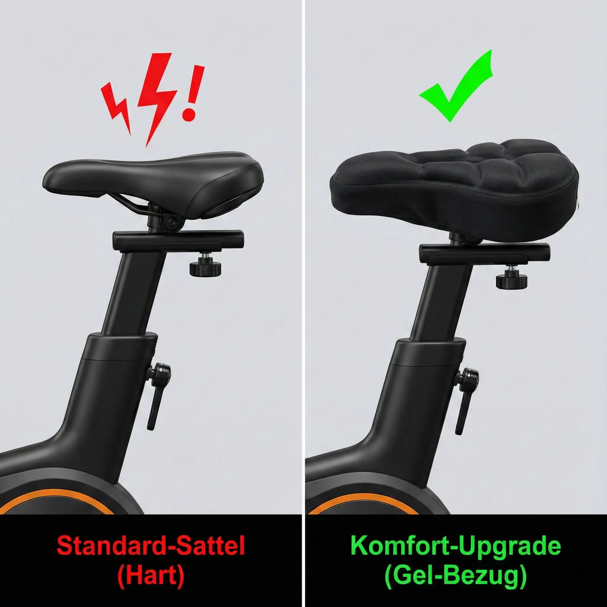 - Der „Sattel-Schmerz“: Dies ist der häufigste Kritikpunkt in fast jeder Merach Heimtrainer Erfahrung. Die mitgelieferten Sportsättel sind für ungeübte Hintern oft sehr hart und schmal (typisch Rennrad). Pro-Tipp: Bestelle dir direkt einen Gel-Sattelbezug mit oder tausche den Sattel gegen ein breiteres Modell aus (dank Standard-Aufnahme meist problemlos möglich).