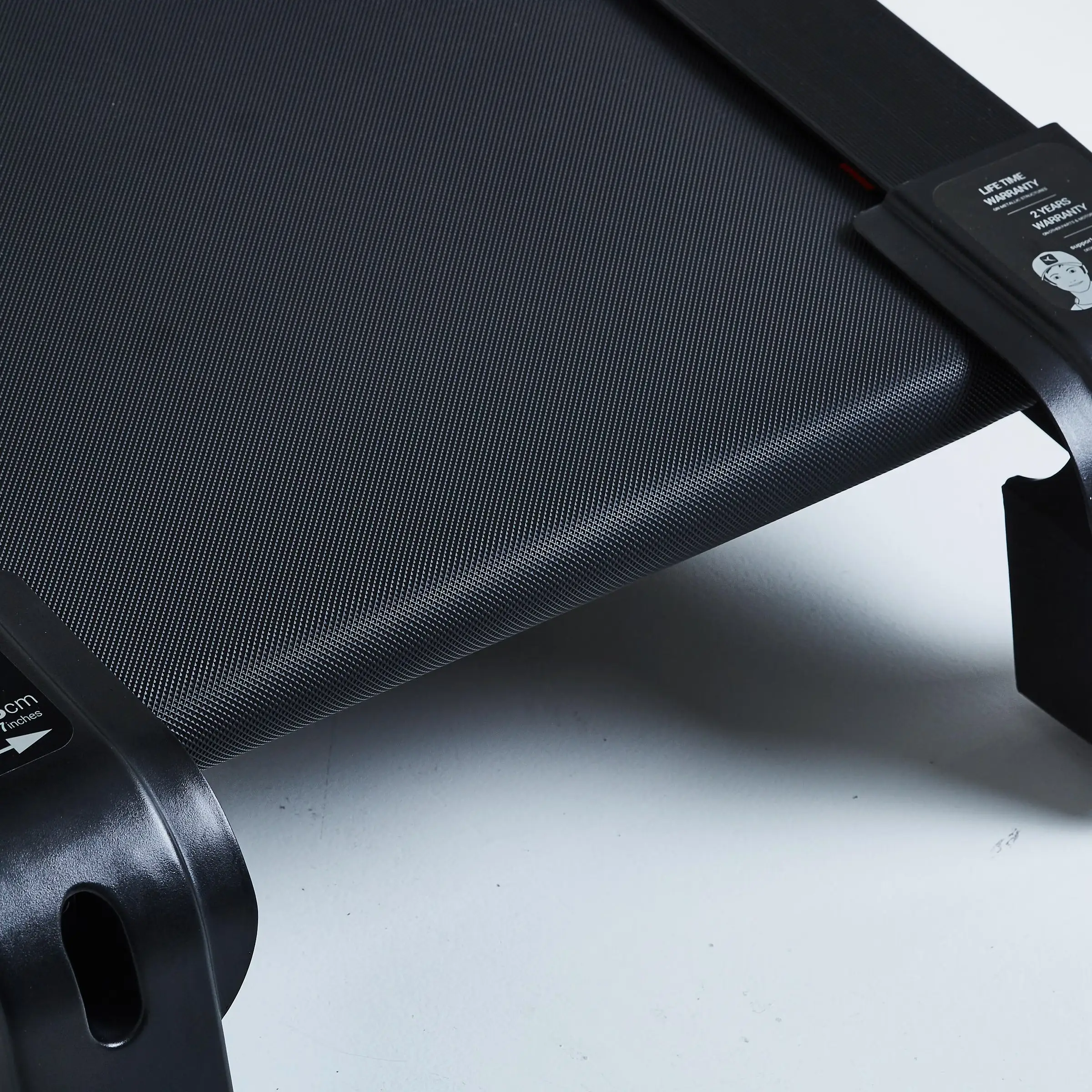 Dieser Part ist der wichtigste Aspekt unserer Analyse. Das Domyos T520B setzt auf eine Lauffläche von 121 x 43 cm. Diese Maße entsprechen den gängigen Sicherheitsnormen, wirken jedoch im Vergleich zu Profi-Bändern etwas kompakter.