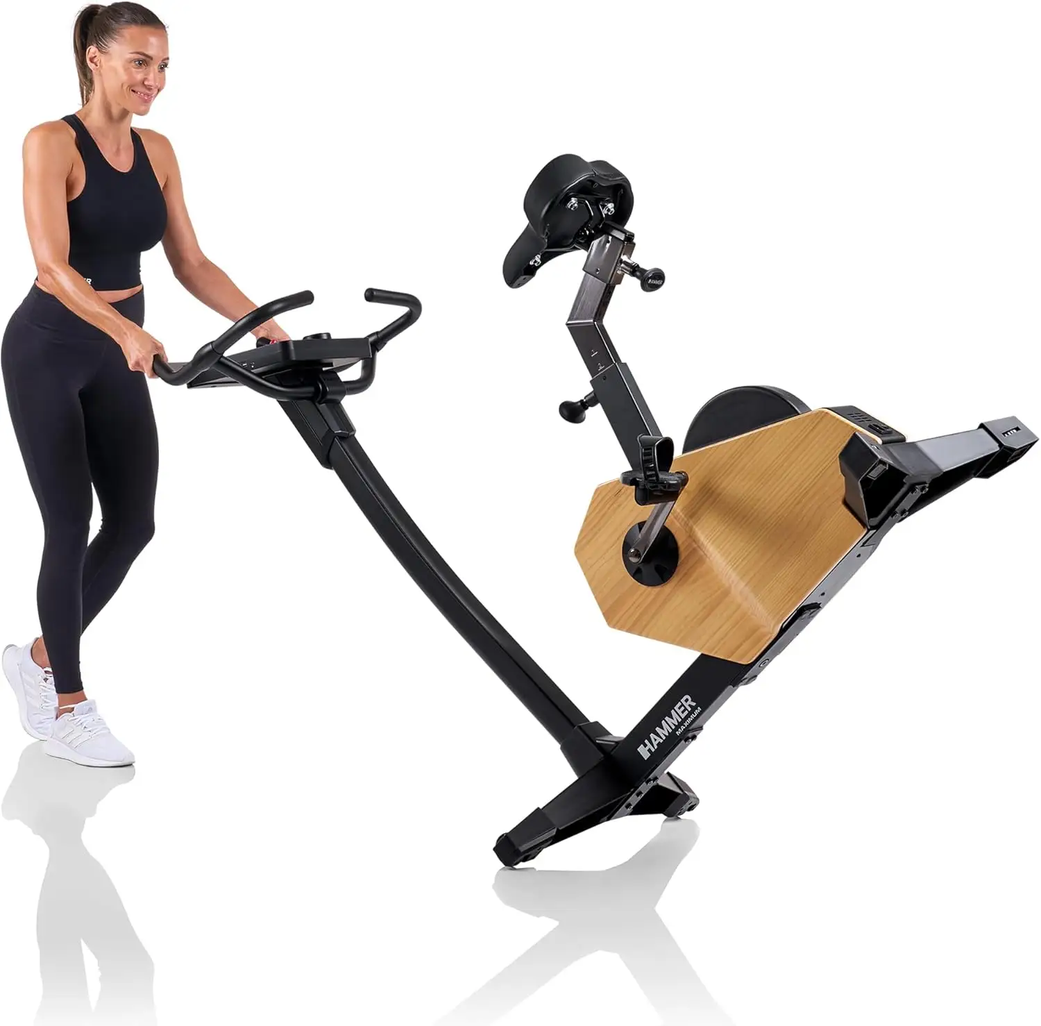 Der erste Eindruck, den wir beim HAMMER Spheris 4.0 NorsK Test gewannen, war schlichtweg exklusiv. Das Gerät bricht mit der typischen Fitnessstudio-Optik aus kaltem Stahl und grauem Kunststoff. Die Verwendung von Holzfaserplatten im hochwertigen Echtholz-Look verleiht dem Ergometer eine organische Wärme, die sich perfekt in moderne Wohnlandschaften integriert. Wir untersuchten die Materialgüte im Detail und stellten fest, dass die Kombination aus robustem Stahl und den Holzelementen eine enorme Verwindungssteifigkeit erzeugt. Die Schweißnähte am Rahmen sind meisterhaft ausgeführt und unter der mattschwarzen Pulverbeschichtung nahezu unsichtbar.