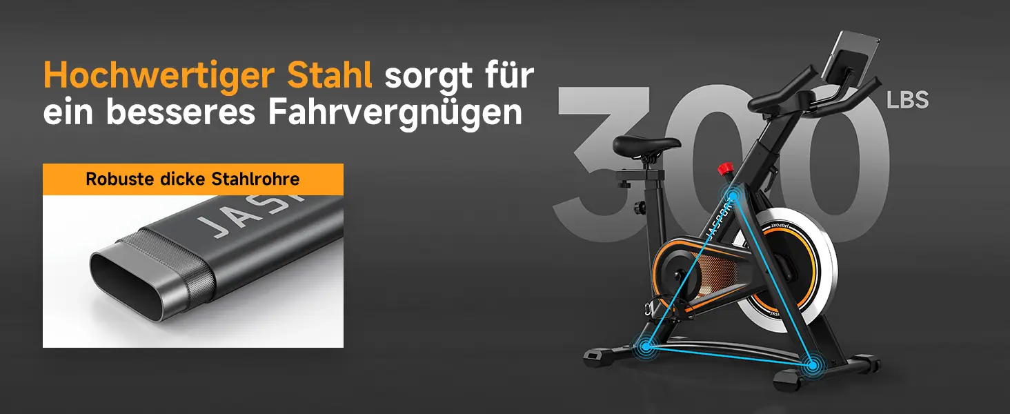 Der JASPORT A3 nutzt ein 7,5 kg schweres Schwungrad. In dieser Preisklasse ist dies eine typische, aber eher geringe Schwungmasse, die den Rundlauf und das Ansprechverhalten beeinflusst. Wir stellten fest, dass das Schwungrad für Erwachsene etwas zu leicht und nicht perfekt austariert war, was zu einem leichten „Eiern“ führte.