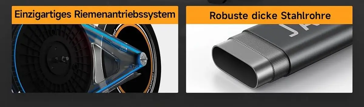 Die Herstellerangaben betonen ein „leises und komfortables Trainingserlebnis“ dank des Riemenantriebs. Wir können bestätigen, dass der Riemenantrieb an sich geräuscharm ist, was in einer Mietwohnung von Vorteil ist.