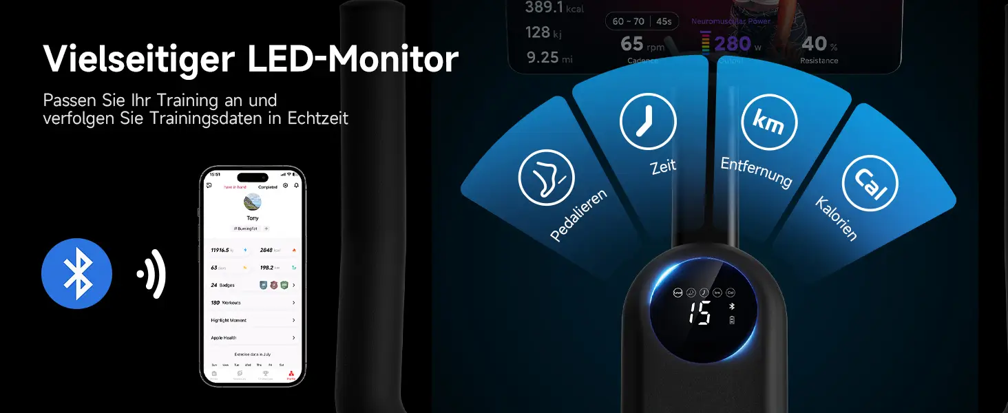 - Umfassender App-Support (Kinomap, Zwift, YESOUL)