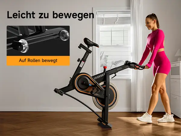 Aufgrund der kompakten Stellfläche von 110 cm x 53 cm eignet es sich gut für kleinere Räumlichkeiten. Das Transportgewicht von 24 kg ist relativ gering und erleichtert das Verschieben des Geräts. Transportrollen sind vorhanden und erleichtern das Manövrieren des Bikes im Raum. Es kann problemlos von einer Person bewegt und gelagert werden.
