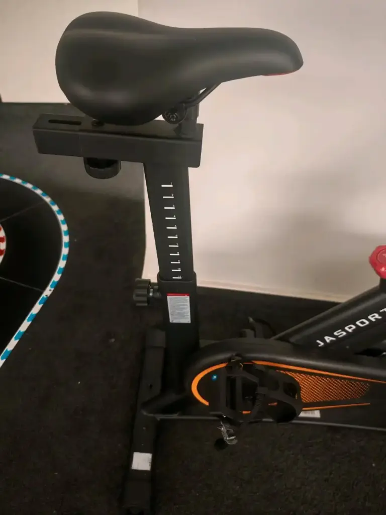 Der Sattel selbst ist gut gepolstert, aber wir stellten bei längeren Trainingseinheiten fest, dass er ziemlich hart ist und schnell unbequem wird. Er kann jedoch durch jeden herkömmlichen anderen Sattel ersetzt werden. Ein wesentlicher Mangel ist die Sattelhalterung: Das verschiebbare U-Profil ist zu labil, was zu einem unangenehmen Wackeln führt.