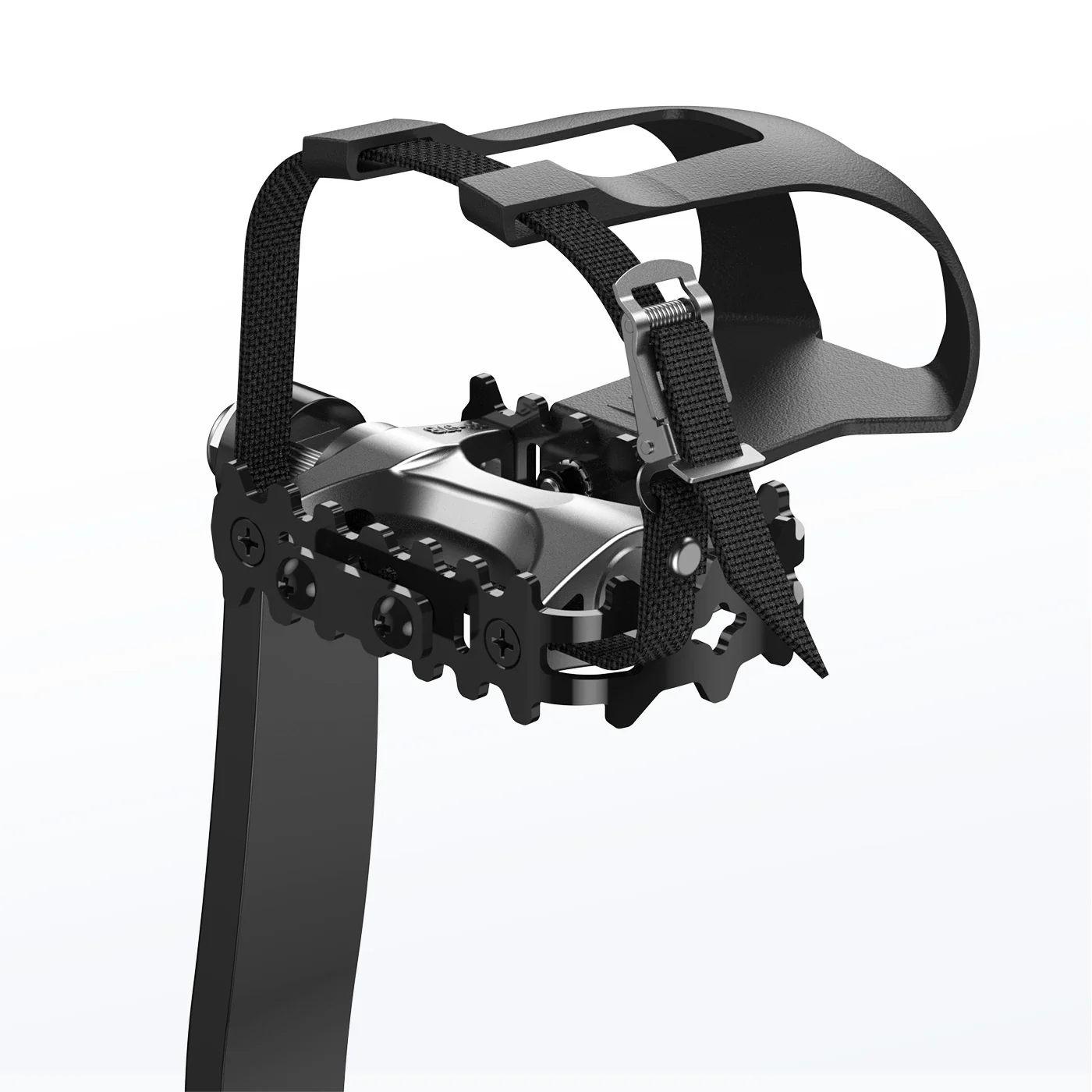 Die Pedale sind rutschfeste Käfigpedale mit Riemen/Korb. Wir stellten fest, dass dieses Design das schnelle Ein- und Aussteigen erschwert, da man sich mit Gurten herumärgern muss. Ambitionierte Radfahrer, die den Kraftschluss maximieren wollen, werden die Pedale austauschen wollen, was problemlos möglich ist, da das Bike Standardgewinde verwendet. Wir haben unsere eigenen Klickpedale montiert und konnten so deutlich mehr Kraft und Widerstand in das Fahrrad bringen.