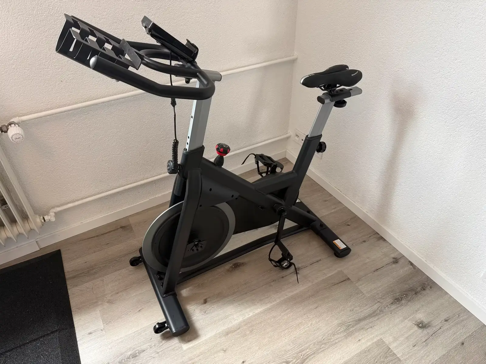 Das Gerät verdankt einen Großteil seiner Robustheit seinem Eigengewicht von 43 kg und dem breiten, verdickten Rahmen. Die Griffbeschichtung des Lenkers bietet auch bei schweißtreibenden Einheiten guten Halt. Der Sattel wirkt in seiner Grundausstattung hart und sportlich, was bei längeren Einheiten ohne gepolsterte Radhose oder einen optionalen Gelsitz als verbesserungswürdig erscheint.