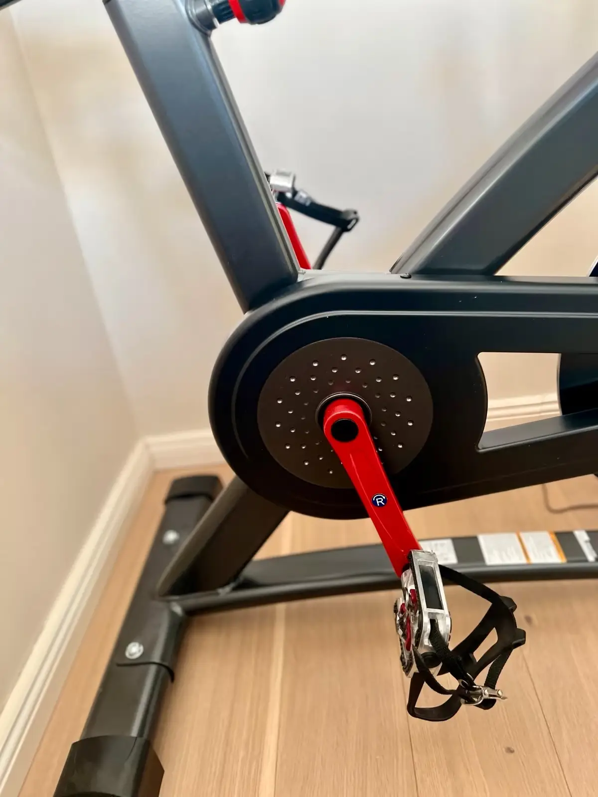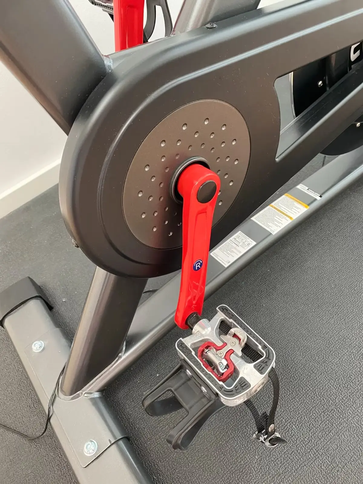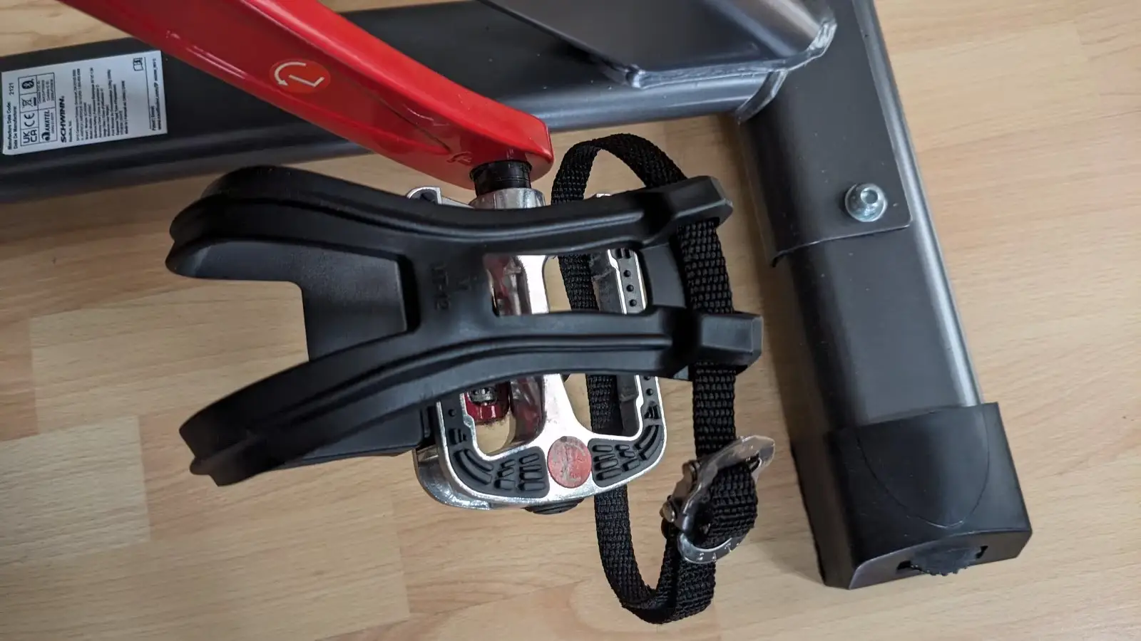 - Pedale: Das Dual-Pedal-System ist ein großer Pluspunkt. Es ermöglicht die Nutzung von normalen Sportschuhen (mit Fußschlaufen) und speziellen Fahrradschuhen (SPD-Klick-System). Diese Wahlfreiheit ist ein entscheidender Vorteil, da wir nicht auf Herstellervorgaben (wie bei Peloton) angewiesen sind und das Rad sofort mit der bevorzugten Ausrüstung genutzt werden kann.