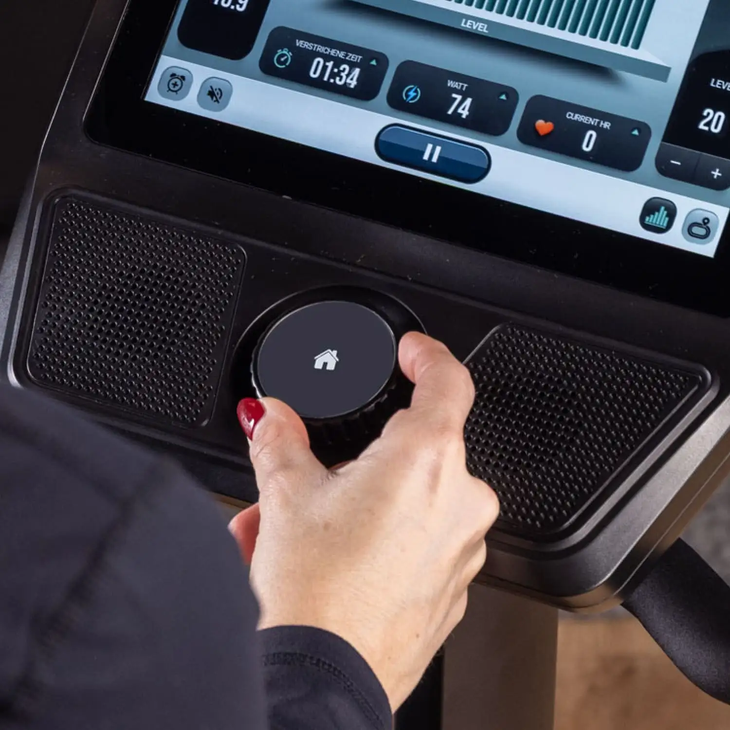 - Der Trainingscomputer mit dem großen HD-Touchscreen-Display.