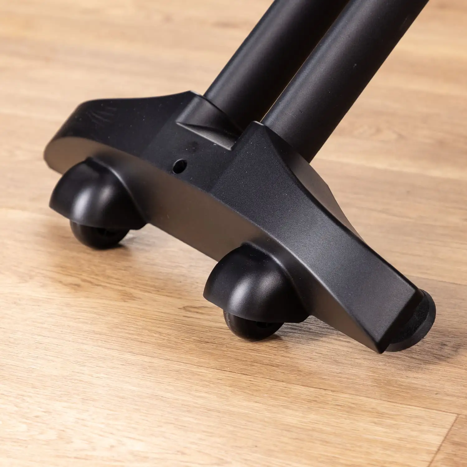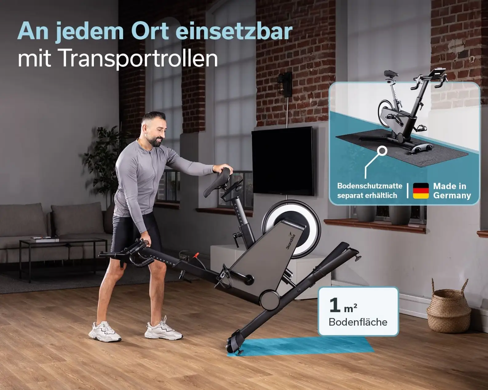 Für den Transport innerhalb der Wohnung ist das Bike jedoch mit großen, leichtgängigen Transportrollen am vorderen Standfuß ausgestattet. Trotz des Gewichts von 39 kg ließ es sich in unserem Test auf Hartböden mühelos verschieben.