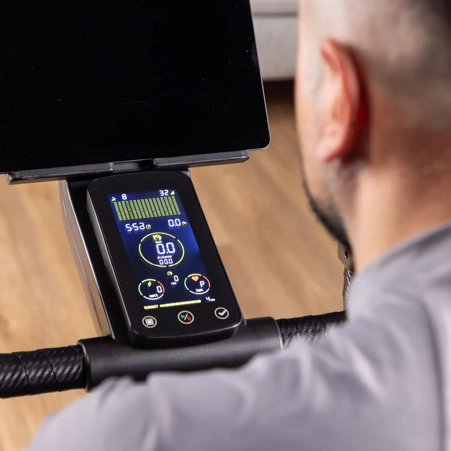 Wer unseren Heimtrainer Vergleich heranzieht, wird feststellen, dass diese tiefe physische Integration in die Software in dieser Preisklasse ein technologisches Highlight darstellt. Die Tablethalterung ist gummiert und stabil genug, um auch große iPads sicher zu fixieren. Einzig ein USB-Ladeport direkt an der Konsole fehlt uns, um lange Trainingseinheiten ohne Sorgen um den Tablet-Akku zu absolvieren.