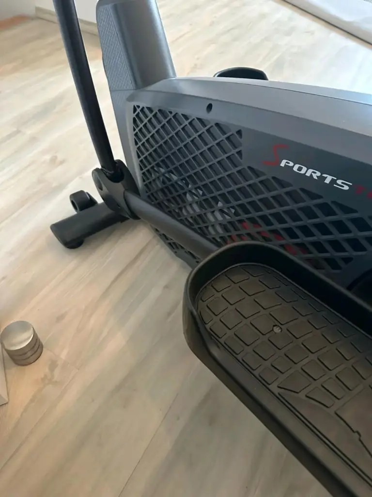Die Schrittlänge beträgt 40 cm. Dies ist ein guter Wert für die Mittelklasse und ermöglichte den meisten unserer Tester eine natürliche und effektive Schrittbewegung, die eher einem leichten Joggen ähnelt. Sie ist auch für größere Personen bis ca. 1,85m gut geeignet, für sehr große Personen könnte sie jedoch etwas limitierend sein. Der von uns gemessene Pedalabstand (Q-Faktor) liegt bei 20 cm. Das ist ein solider Durchschnittswert, der für die meisten Nutzer eine ergonomisch akzeptable, relativ hüftbreite Fußstellung erlaubt, wenn auch nicht ganz so schmal wie bei manchen Premium-Geräten.