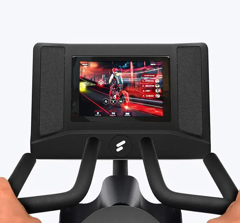 Die Funktionalität des Bikes dreht sich um die Sportstech Live App, die über das Android-basierte System auf dem 21.5″ Display im Kiosk-Modus läuft.