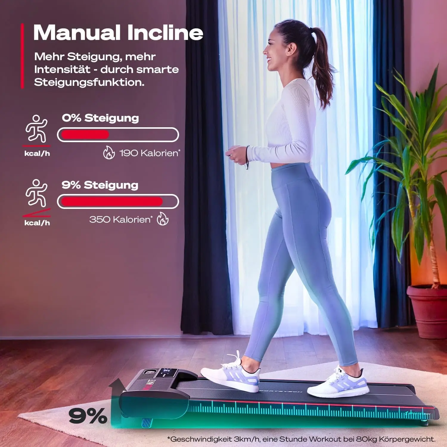 - Manuelle Steigung (9 %) für mehr Intensität