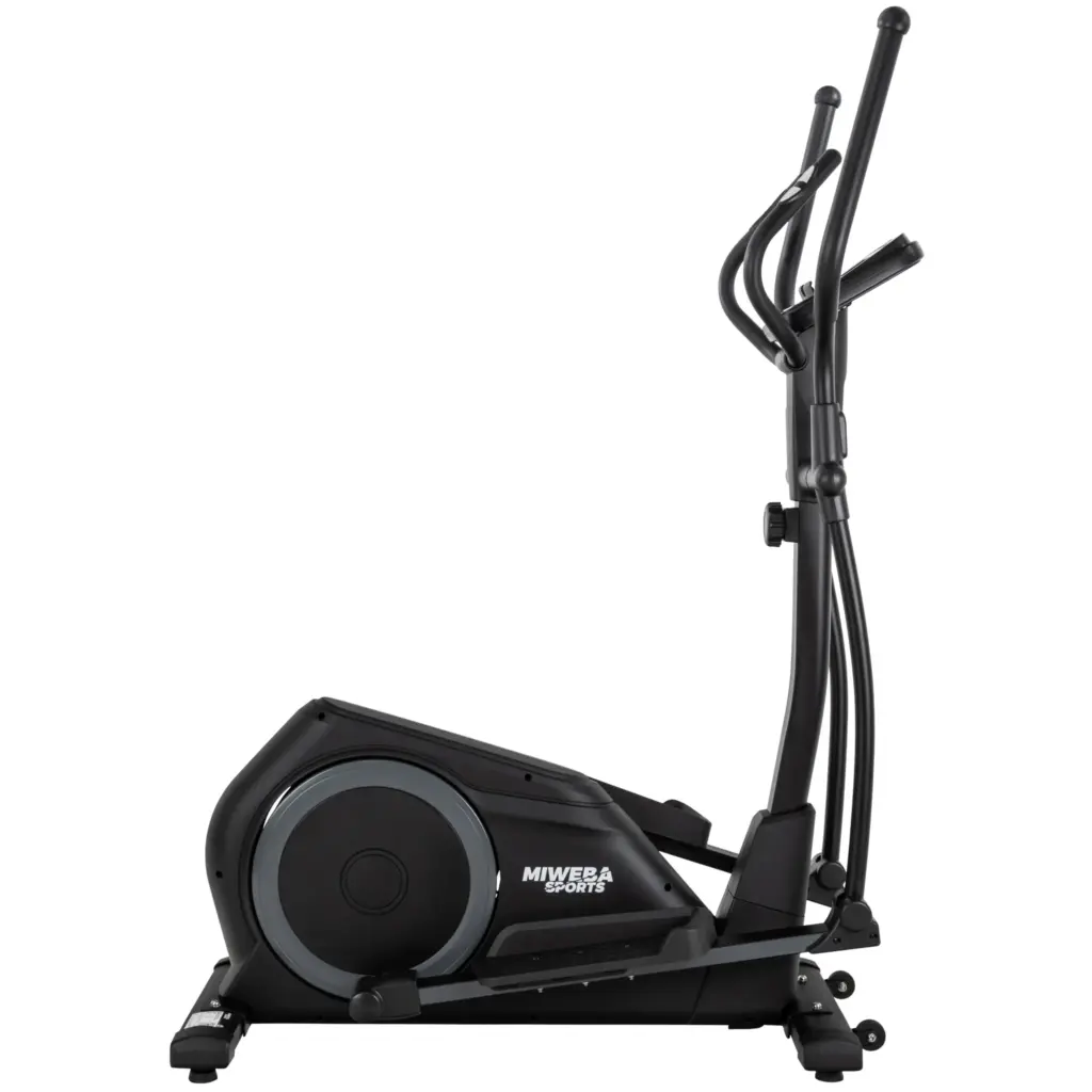 Der Ellipsentrainer (Schwungrad vorne): Hier ist die Schwungmasse vor dem Trainierenden platziert. Die Pedale sind auf Schienen oder Rollen gelagert, was eine deutlich flachere, längere und elliptischere Bewegung ermöglicht. Diese Bewegung ist dem Skilanglauf oder dem schnellen Gehen (Walking) sehr ähnlich. Die Füße heben kaum von den Pedalen ab, sondern gleiten nach vorne und hinten.